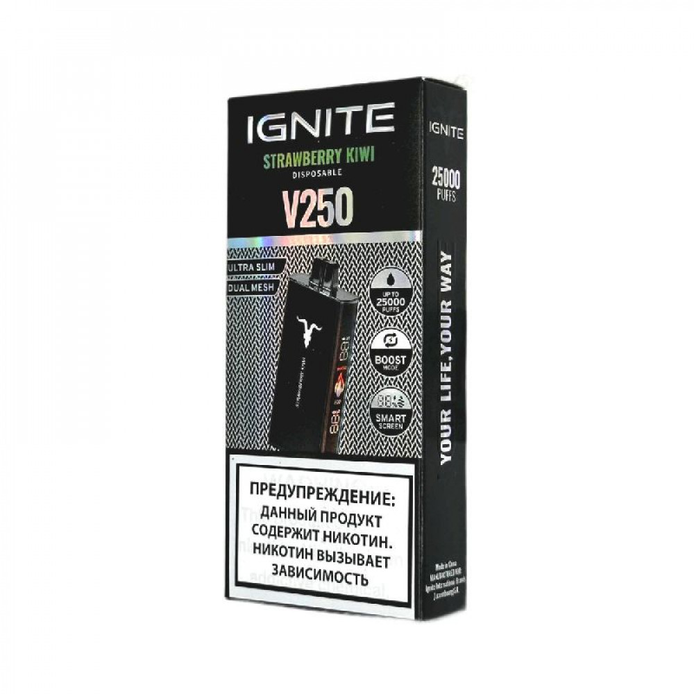 Электронная сигарета Ignite V250 Black 25000 - Strawberry Kiwi (Клубника киви) - купить в Воронеже